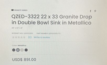 New Swan Granite Kitchen Sink QZED-3322 22x33 Runs $800 New$300Queen Creek, AZ