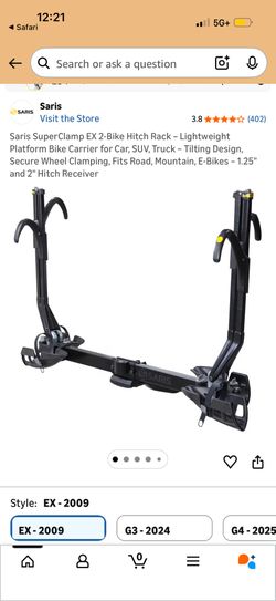 Saris Superclamp EX 2 bike bicycle upright rack carrier holder 1 1/4 inch or with adapter 2 inch trailer hitch$275Pembroke Pines, FL