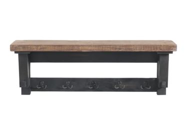 Alaterre furniture Adam 42 in. Wood Coat Hook with Shelf - Rustic Industrial Entryway Storage Rack, Natural Finish, Includes Five Black Steel Double H$60Henderson, NV