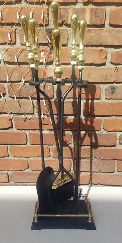 Black Iron Fireplace Tool Set w Brass Handles Good Condition$30Staten Island, NY