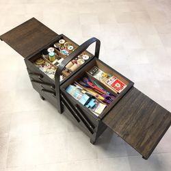 Vintage wooden sewing Organizer box stand on legs includes sewing notions And Buttons$199Streetsboro, OH