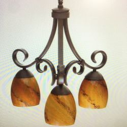 Hampton Bay Rhodes three light nutmeg down light chandelier$100Streetsboro, OH