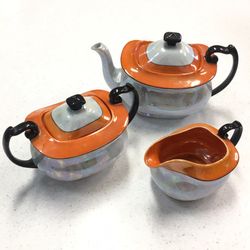 Phoenix China Czechoslovakia Lusterware Tea Set Cream & Sugar Teapot Orange & Pearl$50Streetsboro, OH