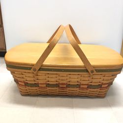Longaberger basket vintage 1996 holiday hostess Yuletide treasures basket protector and Lid double handle Family Picnic$99Streetsboro, OH