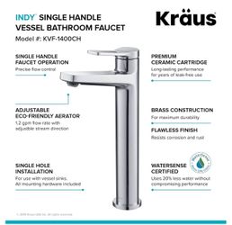 Kraus KVF-1400CH Indy Single Handle Vessel Bathroom Faucet, Chrome$99Sunny Isles Beach, FL