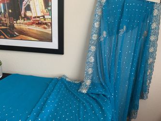 Georgette Silver Sequence, stone Embroidered Floral Blue Sharee with Blouse New$100Rancho Cucamonga, CA