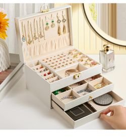 3 Layer White Jewelry Box, Jewelry Holder Organizer with Jewelry Organizer , Large Jewelry Boxes & Organizer with Velvet Earring Organizer, Lockable $15Cumming, GA