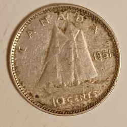 1951 Silver ERROR DDR Canada 10c Coin RARE King George$19Franklin, VA