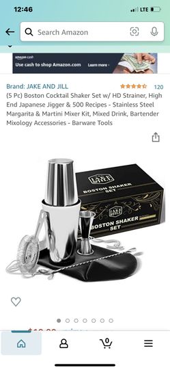5 Pc) Boston Cocktail Shaker Set w/ HD Strainer, High End Japanese Jigger & 500 Recipes$15Norwalk, CA