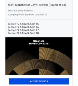 Manchester City Vs. Al Hilal SFC 4 Tickets $60Orlando, FL