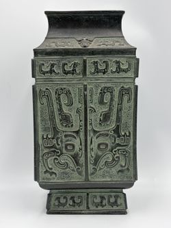 Asian Cast Metal Bronze Dragon Beast Taotie Face Square Vase James Mont Style$280Bellingham, WA