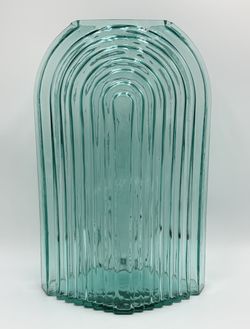 Vintage MCM Pilgrim Blue Teal Glass Metropolis Art Deco Geometric Beveled 13.75"$120Bellingham, WA