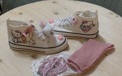 KIDS Hello Kitty High Top Girls' Sneakers White Pink size 13.5 Kids to 1Y $25Irvine, CA