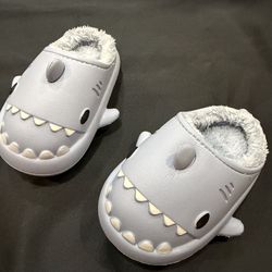 Blue shark clog slippers faux fur lining kids size 10$15Irvine, CA