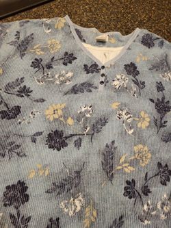 Women 26w/28w (4XL) Northcrest button vneck (with white ami) blue floral ribbed long-sleeve flannel Lot 10$4Janesville, WI