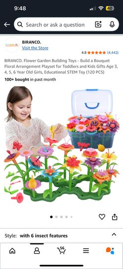 IRANCO. Flower Garden Building Toys - Build a Bouquet Floral Arrangement Playset for Toddlers and Kids Gifts Age 3, 4, 5, 6 Year Old Girls, Educationa$10Los Angeles, CA