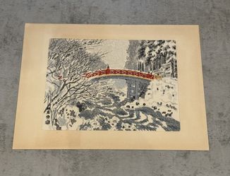 Japanese Woodblock Print by Eiichi Kotozuka "Shinkyo Bridge In Winter" Nikko$90Agoura Hills, CA
