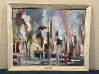 Stunning c1980s Abstract Cityscape Oil Painting by Dr. Sydney M. Saul$265Agoura Hills, CA