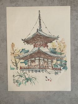 Japanese Woodblock Print by Eiichi Kotozuka "The Sambutsudo Temple in Spring"$55Agoura Hills, CA