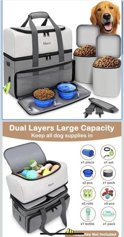 Mancro Dual Layers Dog Travel Bag, Pet Travel Bags with 2 Extra Large Food Containers,$10Rolling Hills, CA
