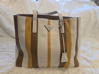 𝐏𝐑𝐀𝐃𝐀 Baiadera Calfskin striped Tote Bag$350Huntington Beach, CA