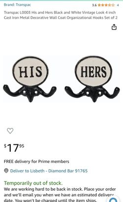 His And Hers Towel Hooks$10Diamond Bar, CA