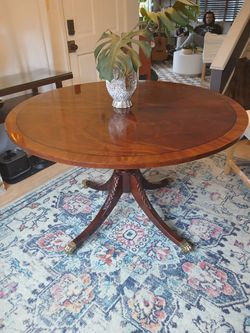 Baker Furniture Georgian Style Banded Wood Pedestal Extension Oval Dining Table With 2 Leafs$2,000Seattle, WA