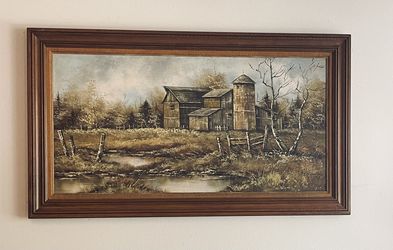 Vintage Summer Landscape Oil Painting of a Rustic Barn Scene in Wooden Frame Signed by Artist for $95! Retails for $300!$95San Diego, CA