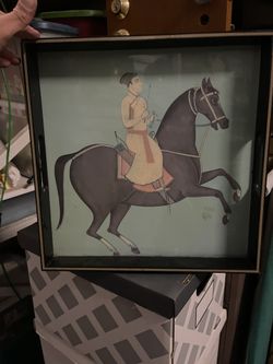 decorative serving tray featuring a print of a Mughal-style painting of a prince on horseback. The original artwork is a traditional Indian miniature $27Quartz Hill, CA