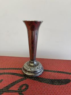 vintage silver-plated bud vase, likely an Ianthe or similar style trumpet vase with a decorated foot base. It is a small, trumpet-shaped vase designe$20Quartz Hill, CA