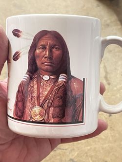 coffee mug appears to be a vintage collectible featuring artwork of a Native American chief, often associated with manufacturers like Leanin' Tree.$10Quartz Hill, CA