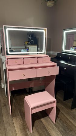 Makeup Vanity 5 Drawers LED Lights Mirror With Chair, Charging Station, 3 Adjustable Light Modes. $250South Elgin, IL