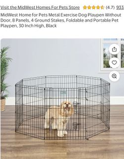 MidWest Home for Pets Metal Exercise Dog Playpen Without Door, 8 Panels, 4 Ground Stakes, Foldable and Portable Pet Playpen, 30 Inch High, Black$45Dublin, OH