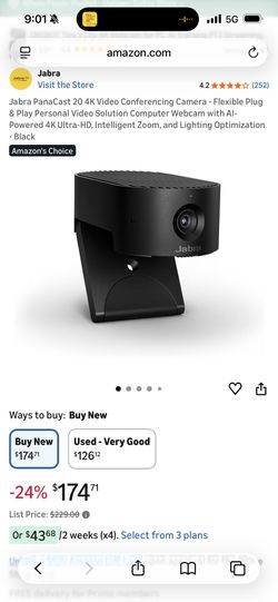 Jabra PanaCast 20 4K Video Conferencing Camera $120Grapevine, TX