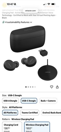 Jabra Evolve2 Buds USB-C w/ Wireless Charging Pad. $175Grapevine, TX