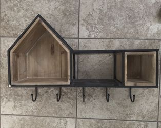 House Shaped Black Metal & Natural Wood Wall Shelf & Hooks$35Lake Oswego, OR