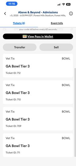 3 Tickets Above & Beyond Forest Hill Stadium 9/5/25! 6pm$90Brooklyn, NY
