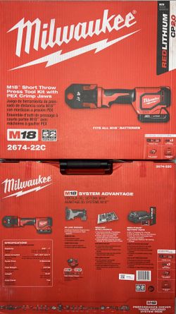 Milwaukee M18 Short Throw PEX Press Kit. Model #2674-22C. (NOT FOR COPPER PIPE)$700North Brunswick Township, NJ