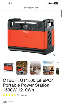 CTECHi GT1500 LiFePO4 Portable Power Station 1500W 1210Wh$400Alhambra, CA