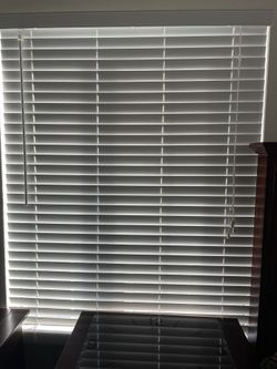 White Faux Wood Blinds for Windows with 2 in. Slats - 45.5 in. W x 62 in. L Like New condition Good work$40Fontana, CA
