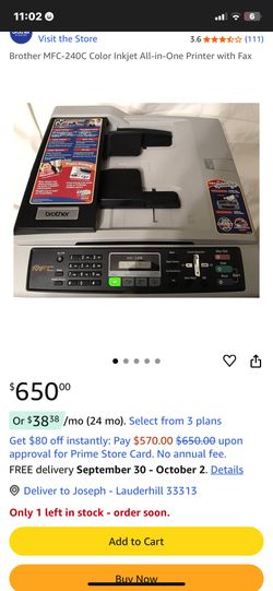 BROTHER PROFESSIONAL PRINTER MFC-240C$80Fort Lauderdale, FL