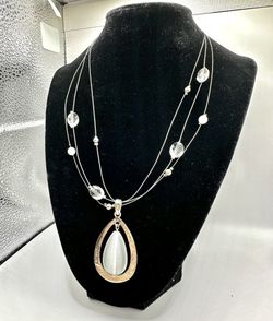 15-18" Silver and White Tiger Eye Shine Pendant Necklace Crystal$10Collegedale, TN