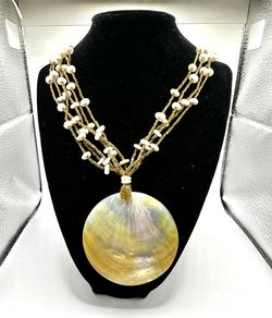 25" Beaded Gold Seashell Pendant Necklace Ocean Beach Layered$15Collegedale, TN