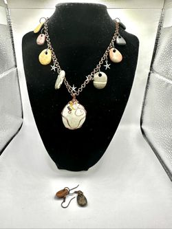 15" Beaded Natural Jasper and Ocean Stone Pendant Necklace and Earrings$25Collegedale, TN