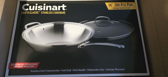 Cuisinart 14-Inch Stir-Fry Pan, Helper Handle and Glass Cover, Chef's Classic Stainless Steel, 726-