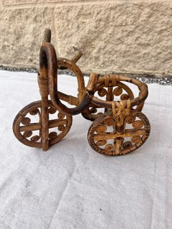VINTAGE BOHO RATTAN BAMBOO BICYCLE TABLE TOP PLANT STAND $25Orlando, FL