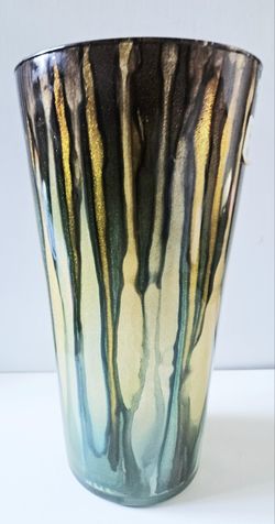 PIER 1 Large 12" Metallic Green Brown Iridescent Glitter Acrylic Vase Italy $25Las Vegas, NV