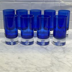 Lot Of 9 Block Stockholm Cobalt Crystal Highball Glasses Controlled Bubble 6.25"$100Alta Loma, CA
