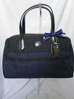 Coach Signature Stripe Wool Charcoal And Colbalt Blue Satchel $100Lakewood, CA