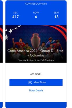 Copa America Brazil 🆚 Colombia $350Santa Clara, CA